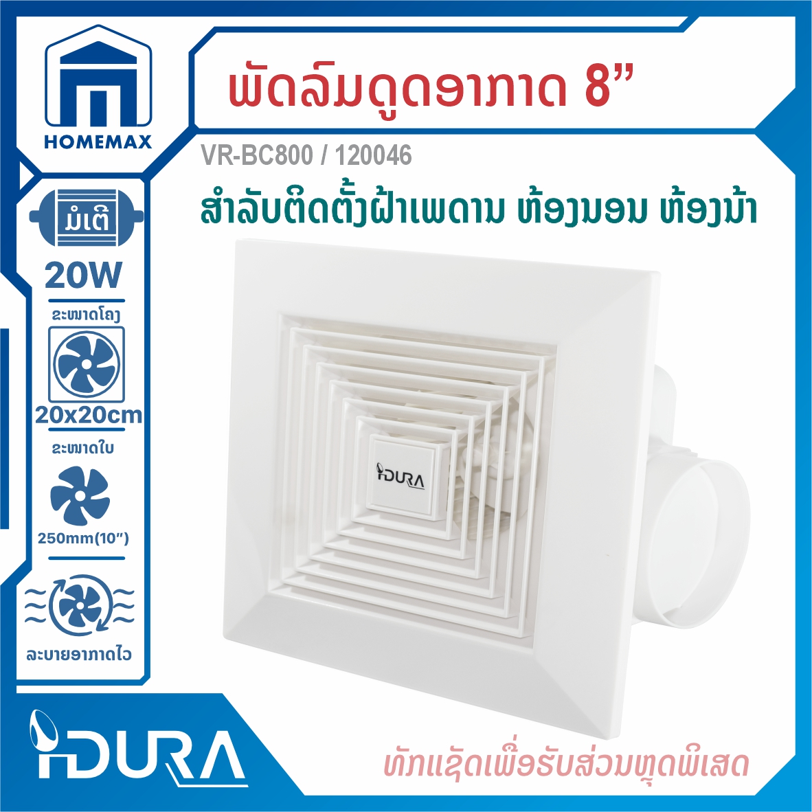 ພັດລົມດູດອາກາດຕິດເພດານ 8" IDURA VR-BC800