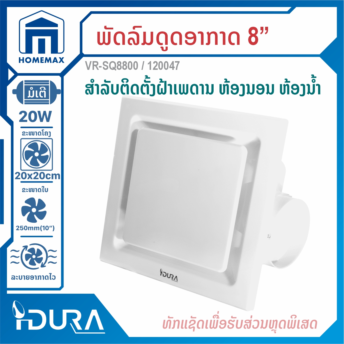 - ພັດລົມດູດອາກາດຕິດເພດານ 8" IDURA VR-SQ8800